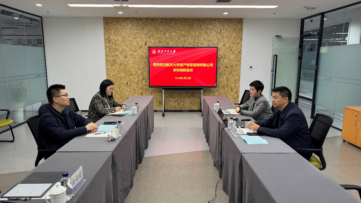 2026年3月27-28日,资产公司总经理钱晓辉带队赴南京理工大学、西北工业大学调研交流。南京理工大学资产公司党委书记、董事长薛素林,资产公司党委副书记、总经理姜炜;西北工业大学资产公司副总经理台炳龙,科技园公司副总经理李艳接待了资产公司一行。